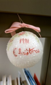 Recently I was asked to share a favorite tradition of mine at Christmas at a campus tree-lighting ceremony and I couldn’t get one particular snapshot of my head. It’s an ornament. It’s not much to look at, as it’s a Styrofoam sphere with cutouts of some of the Strawberry Shortcake gang on it, covered in shiny snow-like flakes, complete with a paper clip hook. But it’s mine, and it represents one of the first memories that I have of Christmas. It was purchased in 1981—it says so on the back of the ornament! Before I saw the date, I didn’t remember when it was purchased, but I definitely remember where it was purchased. It was purchased in the high school gym in my hometown where each year while I was growing up, we attended the craft fair the Saturday after Thanksgiving. I remember my mom bribing my twin sister and me with selecting our very own hand-crafted ornament if we would behave during the sometimes monotonous hour or two of looking at carved Santas, homemade jam, and handcrafted clocks. That year (apparently 1981), I found my ornament about halfway through the zig-zag of booths, displayed on a table top Christmas tree and nestled with other cartoon plastered characters on various forms of ornaments. I was five, so Blueberry Muffin, and her friends Apple Dumplin’ and Strawberry Shortcake were just my speed! I distinctly remember picking out the ornament and carrying it around so carefully, thinking that my favorite cartoon friends were the absolute best thing in that whole craft fair! Each year as I grew up, I remember placing the ornament on the tree. I silently enjoyed the walk down memory lane and probably smiled at myself for thinking that this ornament was so exquisite as a child.